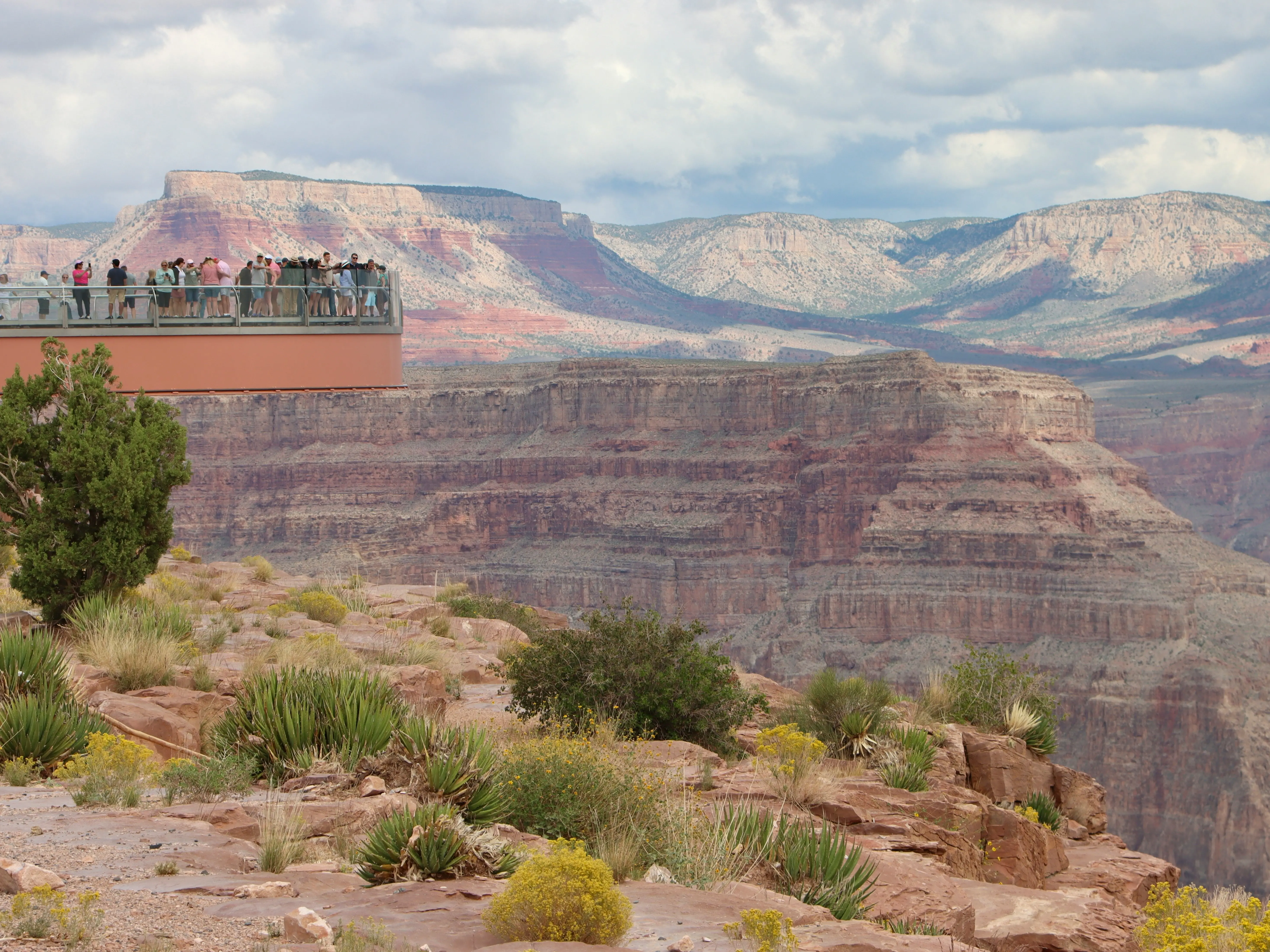 Grand Canyon West is not part of Grand Canyon National Park, but a separate tourist area run by the Hualapai Tribe out of their reserved lands. Private vehicles are not allowed to tour the area-- all cars must be parked, and visitors can get around via a shuttle service offered by the tribe. Activities at Grand Canyon West include white-water rafting, a tour of the educational "Indian Village," horseback riding, and the Skywalk Glass Bridge.