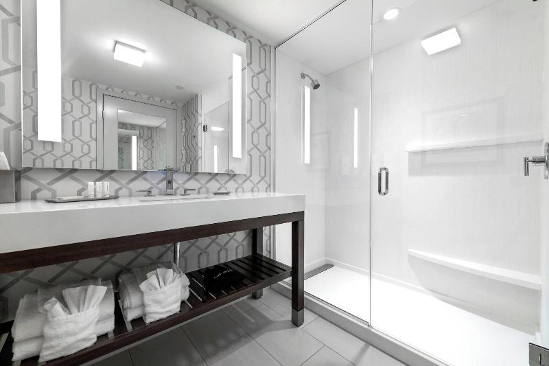 Located in Edgewater's entertainment district, the Courtyard by Marriott Edgewater NYC Area is a short drive from popular attractions. SoJo Spa Club is a mere two minutes away by car, and the iconic George Washington Bridge is just ten. This upscale hotel is also conveniently located 6. 3 miles from Madison Square Garden and 6. 4 miles from Times Square. Guests can enjoy an indoor pool and fitness center, as well as complimentary Wi-Fi and a television in the common area. The hotel's 156 air-conditioned rooms offer refrigerators, Smart TVs, and complimentary wired and wireless internet access. Entertainment options include iPod docking stations and satellite programming. Private bathrooms feature showers, complimentary toiletries, and hair dryers. For added convenience, desks, microwaves, and phones with free local calls are also provided. The Bistro, the hotel's restaurant and bar/lounge, serves American cuisine. Guests can also dine at the coffee shop/cafe. Buffet breakfast is available for a fee on weekdays from 6:00 AM to 10:00 AM and on weekends from 7:00 AM to 11:00 AM. Featured amenities include complimentary wired internet access, a 24-hour business center, and express check-in. Self-parking is available for $18 per night.
