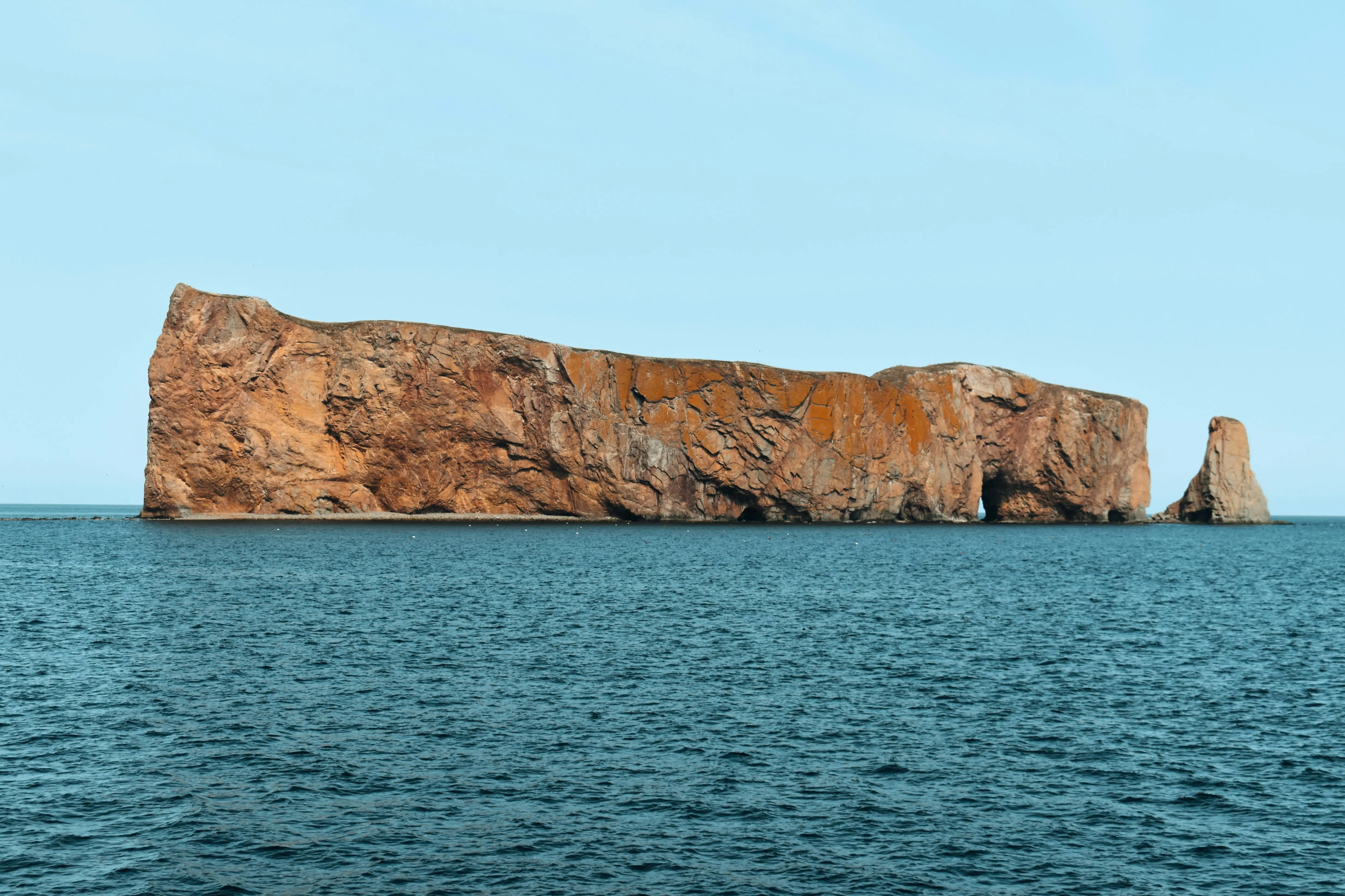 Perce Rock is one of the most recognizable geological formations in Canada. Once connected to the mainland, years of erosion have yielded its arch shape. It can be visited by boat for only four hours a day, dependent on the tide.